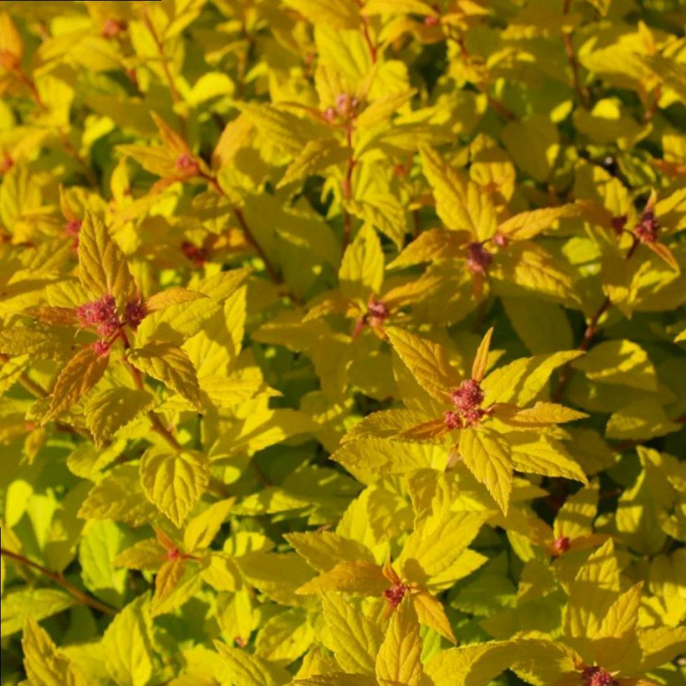 Взрослый куст высотой около 0,8 м, шириной до 1,5 м, шарообразной формы. Цветет в июне-августе. Цветение довольно обильное, розовыми соцветиями, покрывающими куст. После обрезки соцветий возможно повторное цветение. Декоративный эффект достигается не только благодаря пышному цветению, но и за счет изменения окраски листвы – от насыщенного желтого цвета до зеленовато-желтого во время цветения, а осенью листья приобретают красные, оранжевые и рубиновые оттенки. Сажать лучше на солнечные участки для сохранения яркой окраски листьев.